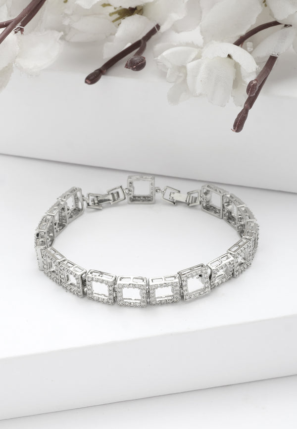 Deze adembenemende armband combineert modern design met tijdloze glamour. De open cuff-stijl is elegant versierd met een waterval van stralende stenen, die het licht bij elke beweging vangen. De rijke...
