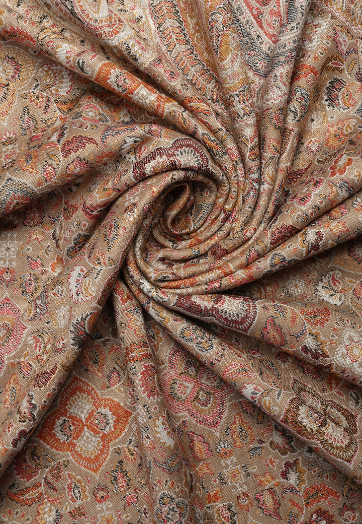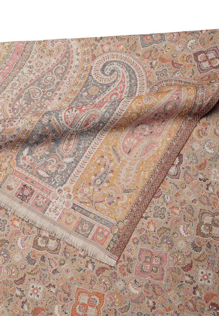 Smukke Jamawar-designs på et blødt imiteret pashmina-stof og traditionelt kunstværk. Populær siden Mughal-æraen. Denne traditionelle stole i Kashmiri-stil har indviklet design og kvalitet.