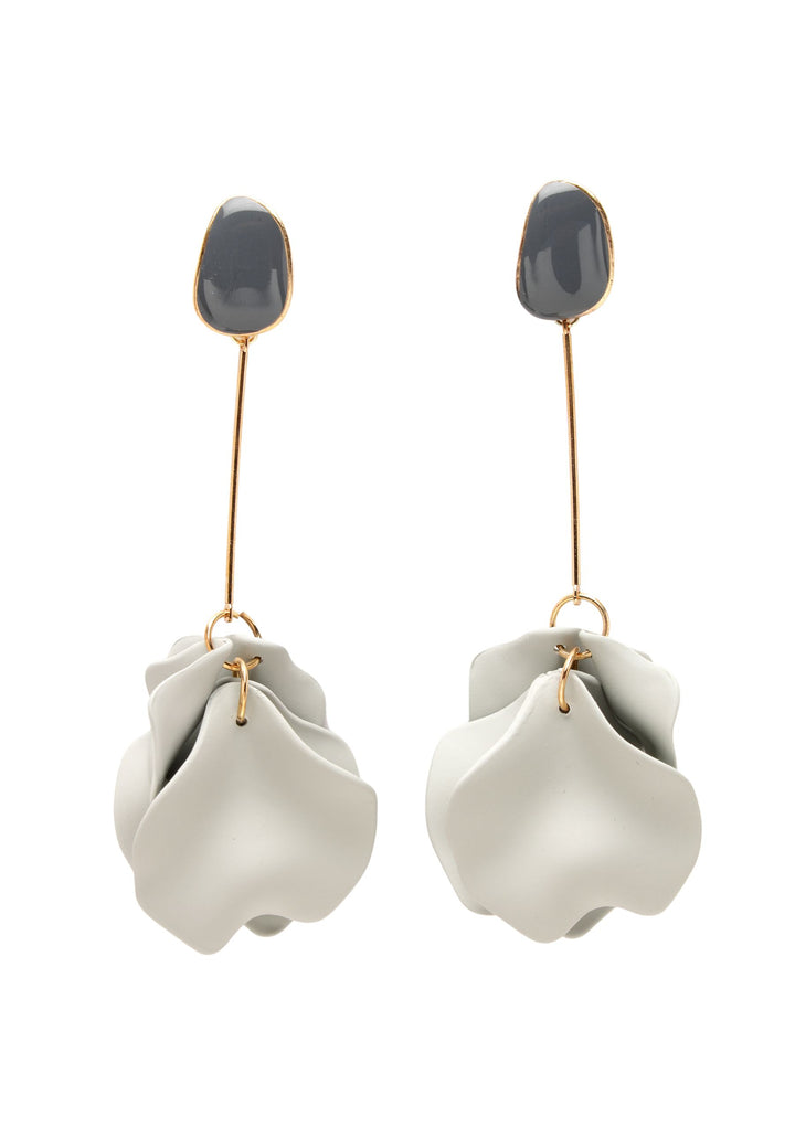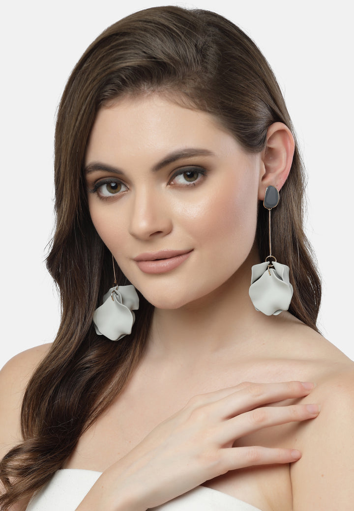 Los aretes de pétalos en gris son una opción llamativa y moderna para quienes desean agregar un toque a su look veraniego y una elegancia inspirada en la naturaleza a su colección de joyas. Los pendientes de flores grises son un accesorio versátil que combina con muchos conjuntos diferentes. Pueden ser una pieza llamativa para vestir con outfits blancos.