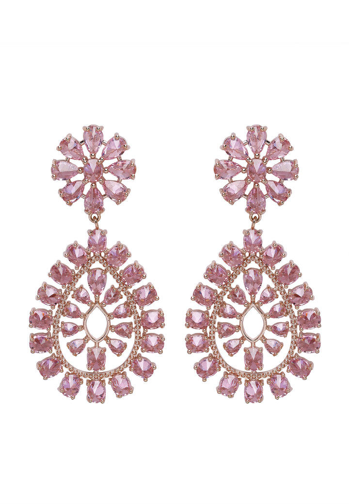 Diva-kokoelman säihkeät kukkakorvakorut ovat täydellinen ilmentymä eleganssista ja viehätyksestä, suunniteltu vangitsemaan kukkateemaisella kauneudellaan ja upealla kimmellyksellään. Nämä korvakorut sisältävät vaikuttavan yhdistelmän vaaleanpunaisia kuutiollisia zirkonialkiviakiviä, luoden hämmästyttävän visuaalisen vaikutelman, joka on sekä hienostunut että elinvoimainen. Diva-kokoelman säihkeät kukkakorvakorut ovat monipuolinen asuste, joka voi täydentää laajaa valikoimaa asuja. Olitpa pukeutumassa erityistapahtumaan, rentoon kokoontumiseen tai yksinkertaisesti etsimässä tapaa nostaa jokapäiväistä tyyliäsi, nämä korvakorut ovat täydellinen valinta.