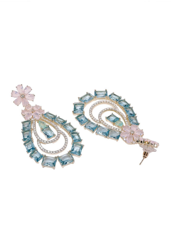 Les boucles d'oreilles pendantes de luxe Diva en zircon cubique multicolore, présentant une combinaison de vert et de rose, sont un exemple éblouissant d'un savoir-faire exquis et d'un design élégant. Ces boucles d'oreilles font partie de la collection Diva. Envisagez des tenues en couleurs unies qui s'harmonisent ou contrastent avec les teintes des boucles d'oreilles pour un look cohérent. Ces boucles d'oreilles, ornées de motifs de fleurs doubles en haut dans des teintes rose clair, et d'une série de pierres carrées menant à des gouttes ovales, offrent un mélange harmonieux de couleurs vives et de formes sophistiquées, en faisant un accessoire parfait pour des occasions spéciales et des événements glamour.
