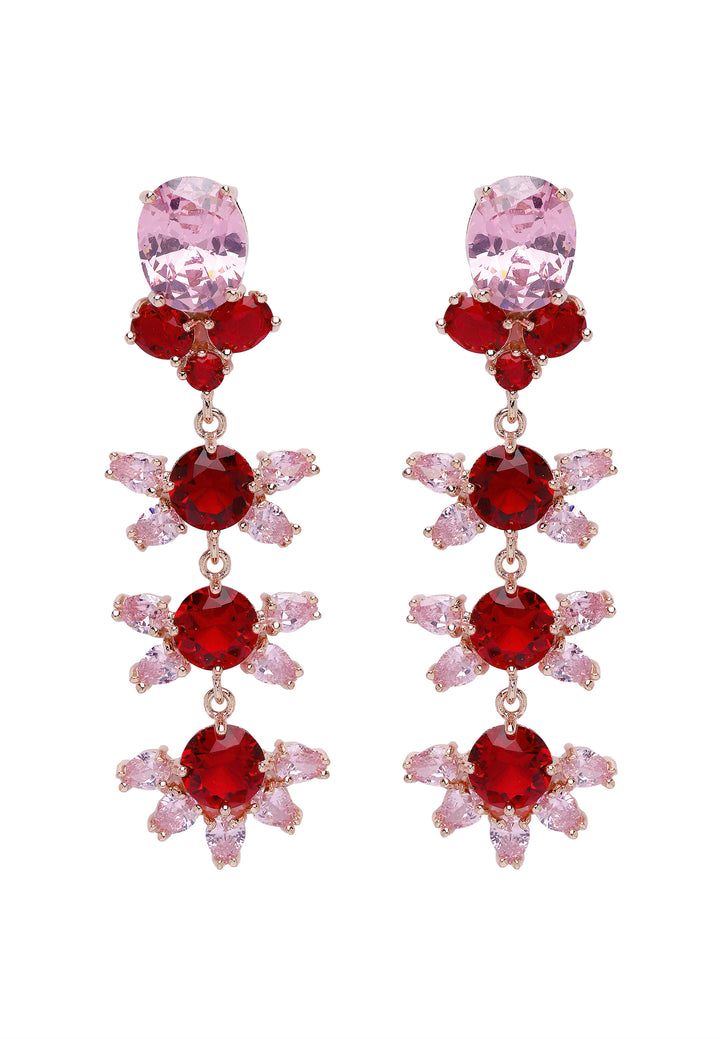 Les boucles d'oreilles pendantes Diva Floral de la Collection Diva sont une expression éblouissante d'élégance et de beauté vibrante. Ces boucles d'oreilles présentent un design floral exquis, orné de pierres en zircon cubique scintillantes dans des teintes captivantes de rose clair et de rouge. Les pierres en zircon cubique de haute qualité sont durables et résistantes, conservant leur éclat et leur vivacité au fil du temps. Ces boucles d'oreilles sont un accessoire remarquable. Elles sont idéales pour ajouter une touche de glamour à n'importe quelle tenue, ce qui en fait un ajout incontournable à toute collection de bijoux.