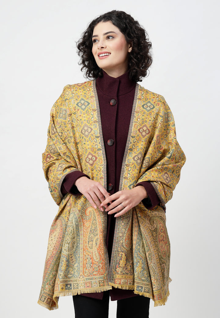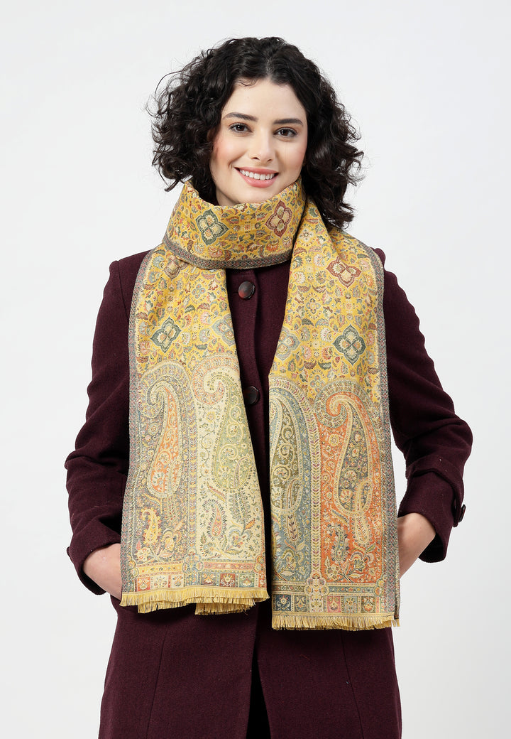 Dearg Jamawar deara, ar fabraic faux pashmina bog agus ealaín thraidisiúnta. Coitianta ó ré na Mughal. Tá an stole traidisiúnta Kashmiri seo le dearadh casta agus cáilíocht.