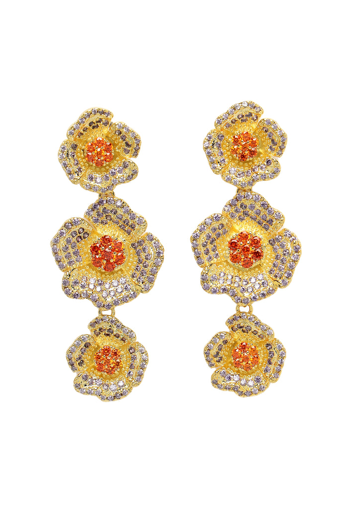 Orecchini pendenti a triplo fiore con zirconi cubici