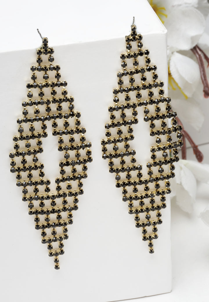 Prachtige ruitvormige zwarte kristallen oorbellen