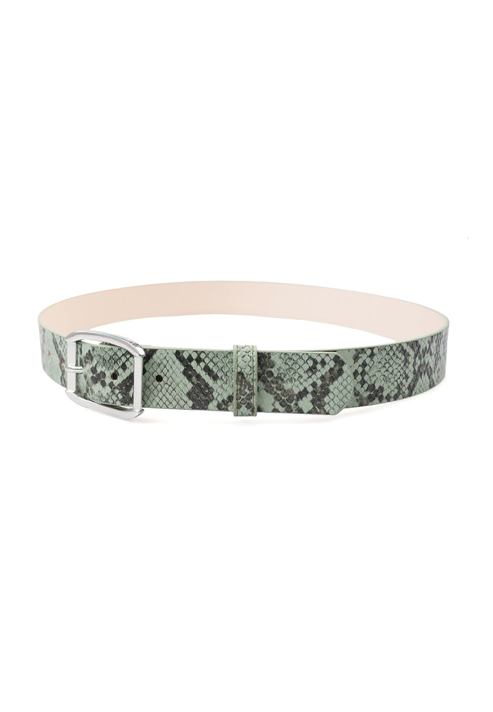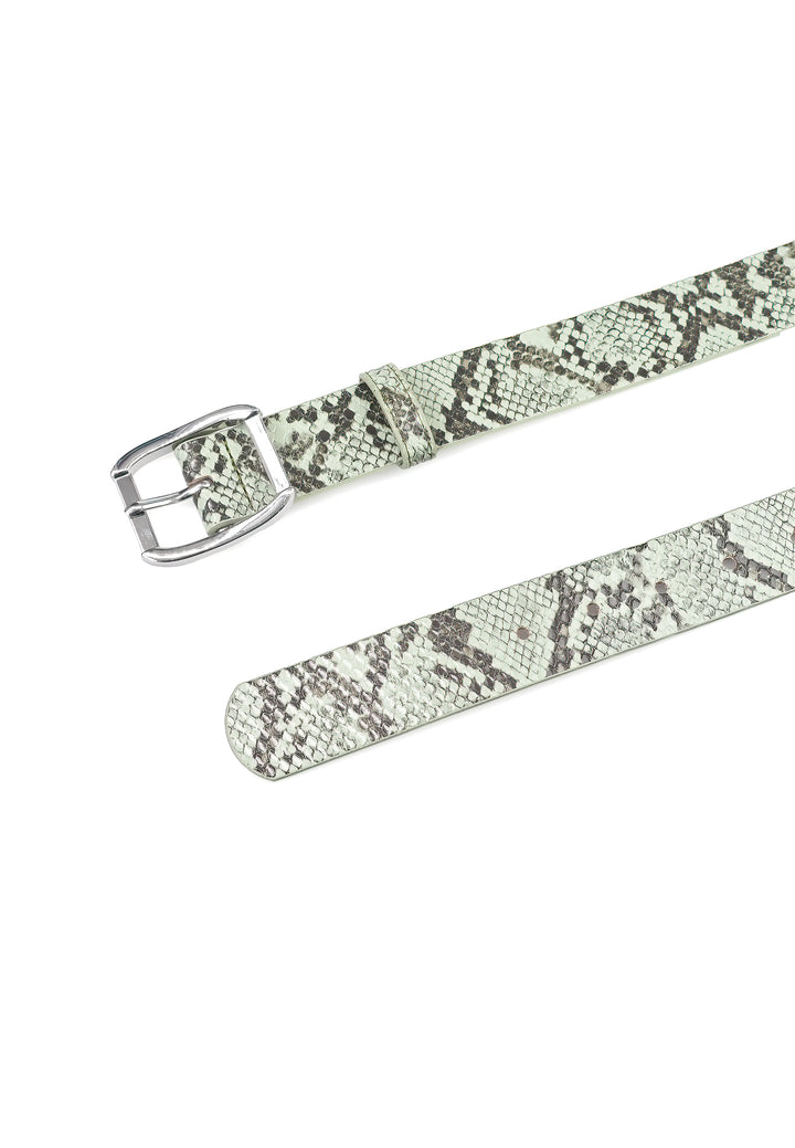 Deze exotische groene riem met slangenprint is een gedurfd accessoire dat een vleugje wilde elegantie toevoegt aan elke outfit. De levendige groene tint, gecombineerd met het ingewikkelde, getextureerde slangenprintpatroon, straalt een edgy en luxe sfeer uit. De strakke afwerking geeft het een moderne maar tijdloze uitstraling, waardoor het een veelzijdige toevoeging aan je garderobe is. Combineer het met een eenvoudig wit of zwart oversized T-shirt en versleten jeans voor een coole, ontspannen stijl.