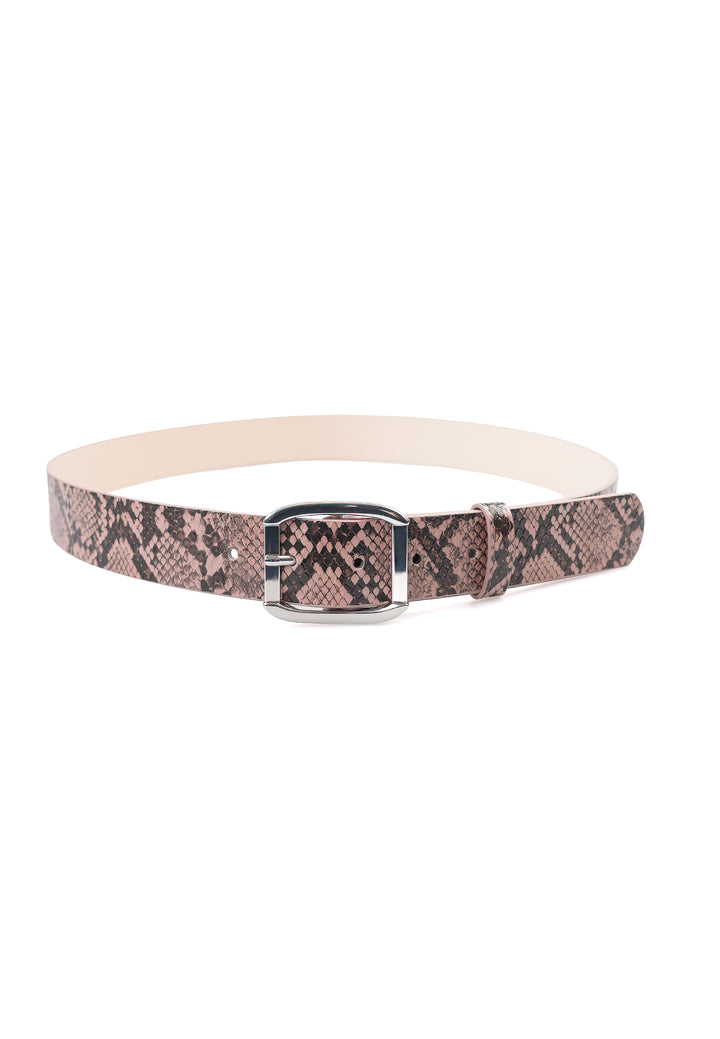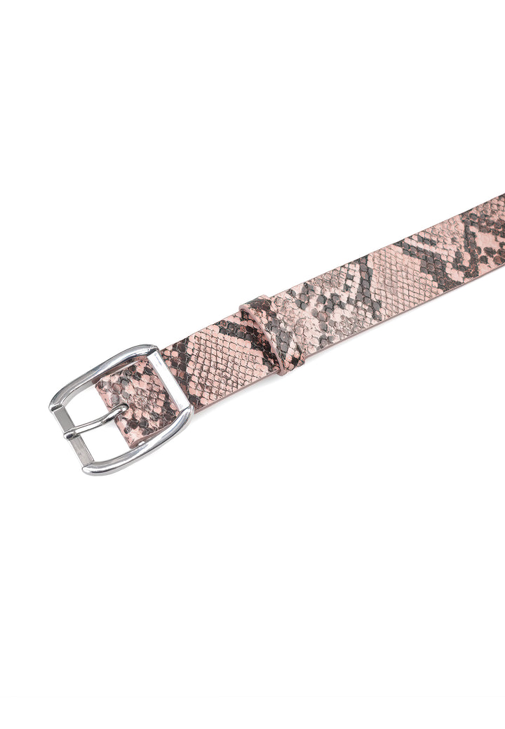 Deze exotische riem met slangenprint is een gedurfd statement-accessoire dat een vleugje wilde elegantie toevoegt aan elke outfit. De levendige grijze tint, gecombineerd met het ingewikkelde, getextureerde slangenprintpatroon, straalt een edgy en luxe sfeer uit. De strakke afwerking geeft het een moderne maar tijdloze uitstraling, waardoor het een veelzijdige toevoeging aan je garderobe is. Voor een meer verfijnde look combineer je de riem met een strakke zwarte jurk of een zijden blouse die in een hoge taille kokerrok is gestopt.