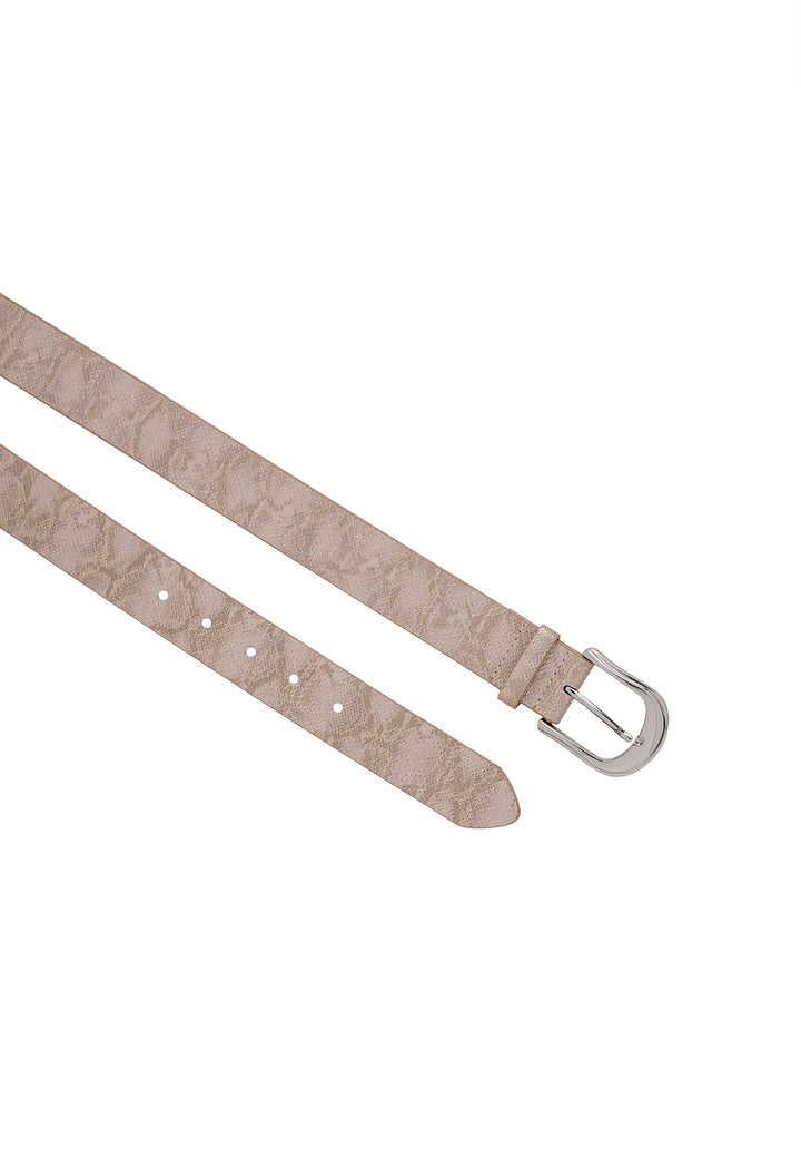 De Serpent Print Riem in beige kleur is een opvallend en gedurfd accessoire dat een gevoel van gedurfde elegantie uitstraalt. Met een ingewikkeld door slangen geïnspireerd patroon, brengt de riem een vleugje mystiek en edgy verfijning in je outfit. Het patroon kan variëren van subtiele, zachte schubben tot meer levendige, gestileerde afbeeldingen van slangen, waardoor de riem een veelzijdige uitstraling krijgt die bij veel verschillende stijlen past. Combineer de serpent print riem met een zwarte leren jas, skinny jeans en enkellaarsjes.