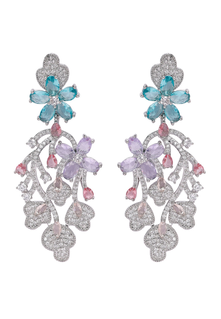 De Diva Floral Drop Earrings uit de Diva Collectie in paarse, groene en zilveren tinten van cubic zirconia zijn een heerlijke en kleurrijke accessoire. Het bloem geïnspireerde ontwerp voegt een romantisch en speels element toe aan de oorbellen, waardoor ze een charmante accessoire zijn. Deze oorbellen zijn veelzijdig en kunnen gedragen worden voor verschillende gelegenheden, van formele evenementen tot casual uitjes. Ze zijn perfect om kleur en verfijning aan je outfit toe te voegen. Perfect voor degenen die van kleurrijke sieraden houden.