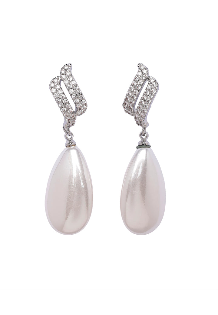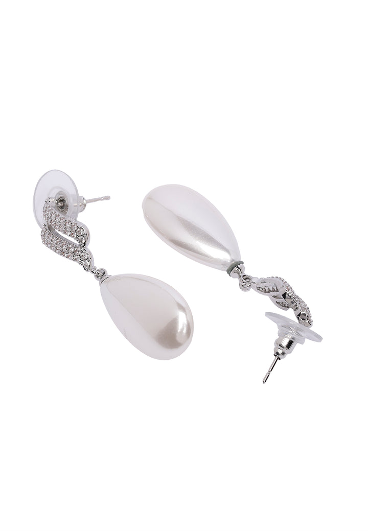 Deze oorbellen zijn een betoverende mix van klassieke en hedendaagse stijl. Een delicate, sprankelende ontwerp hangt een glanzende parel, wat een uitstraling creëert die zowel elegant als uniek is. Ze zijn perfect om een vleugje verfijning aan elke outfit toe te voegen.