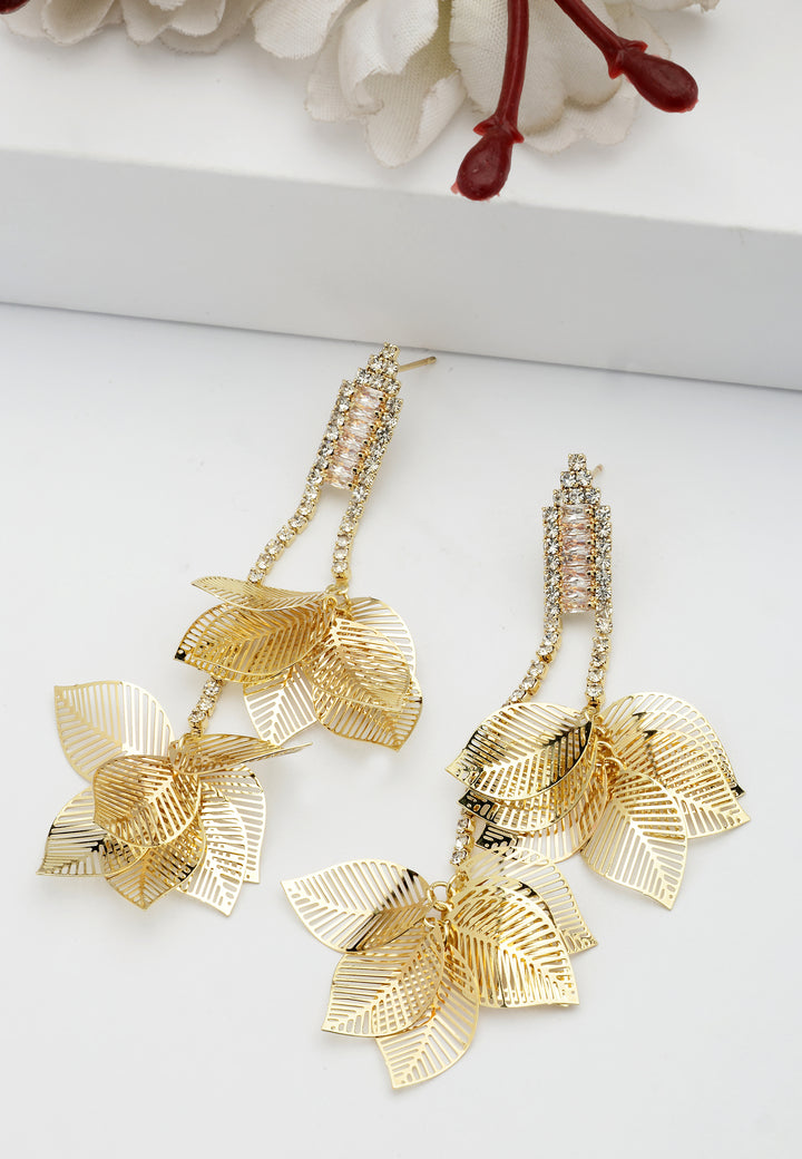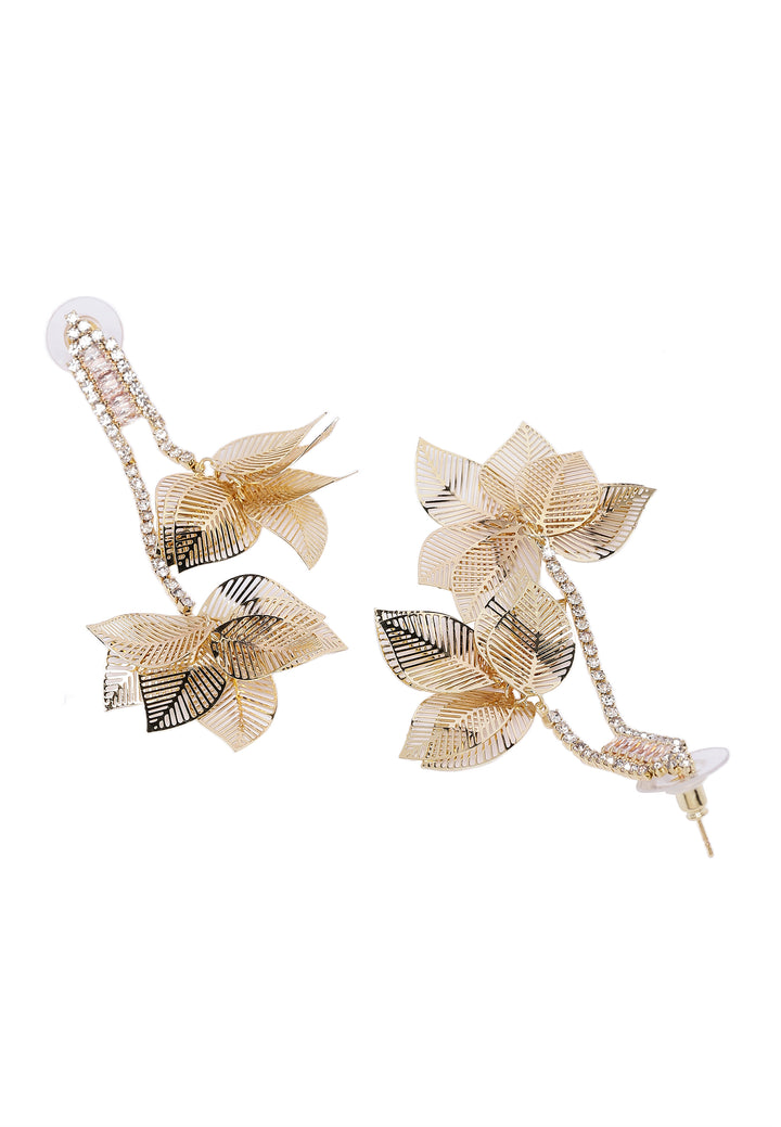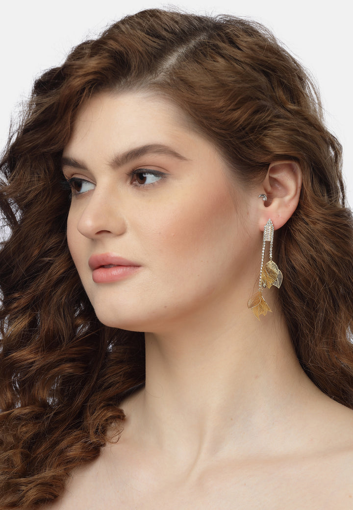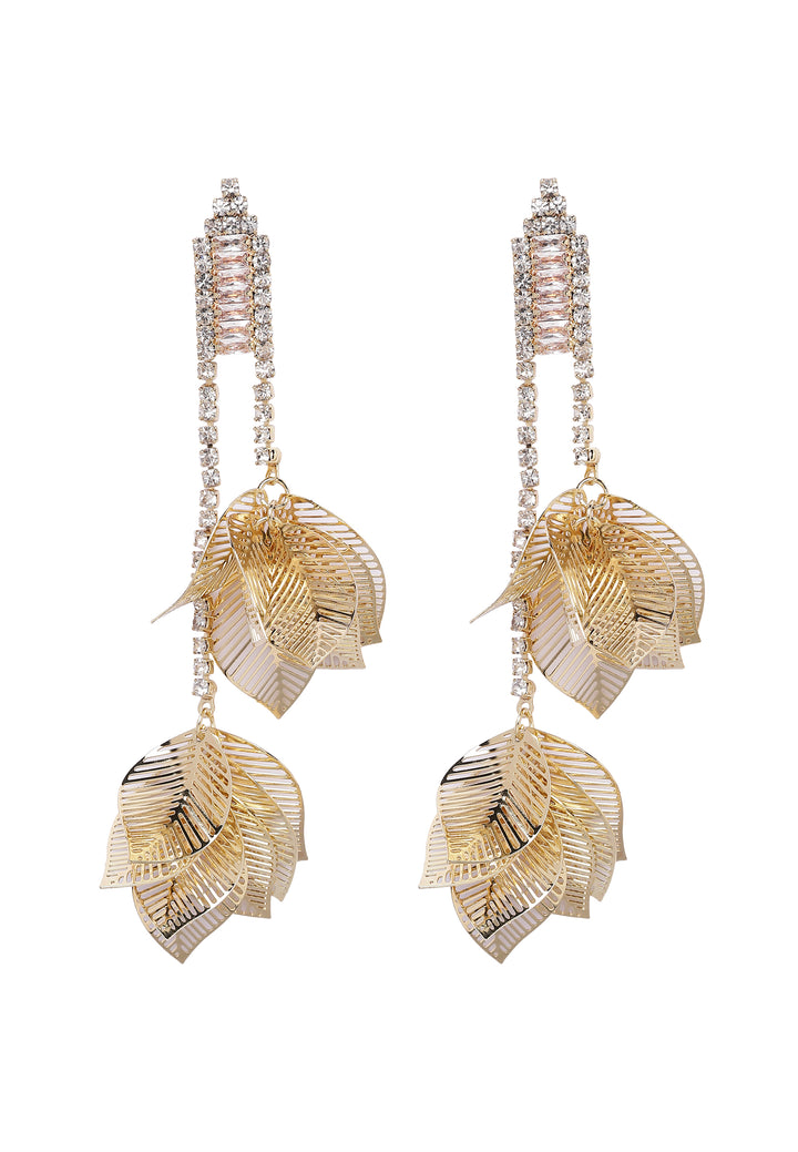 Het lange, elegante ontwerp heeft een waterval van delicate gouden bladeren, elk glinsterend met sprankelende kristallen. Ze zijn perfect voor een alledaagse look of voor speciale gelegenheden, waardoor je een glamoureuze uitstraling krijgt.