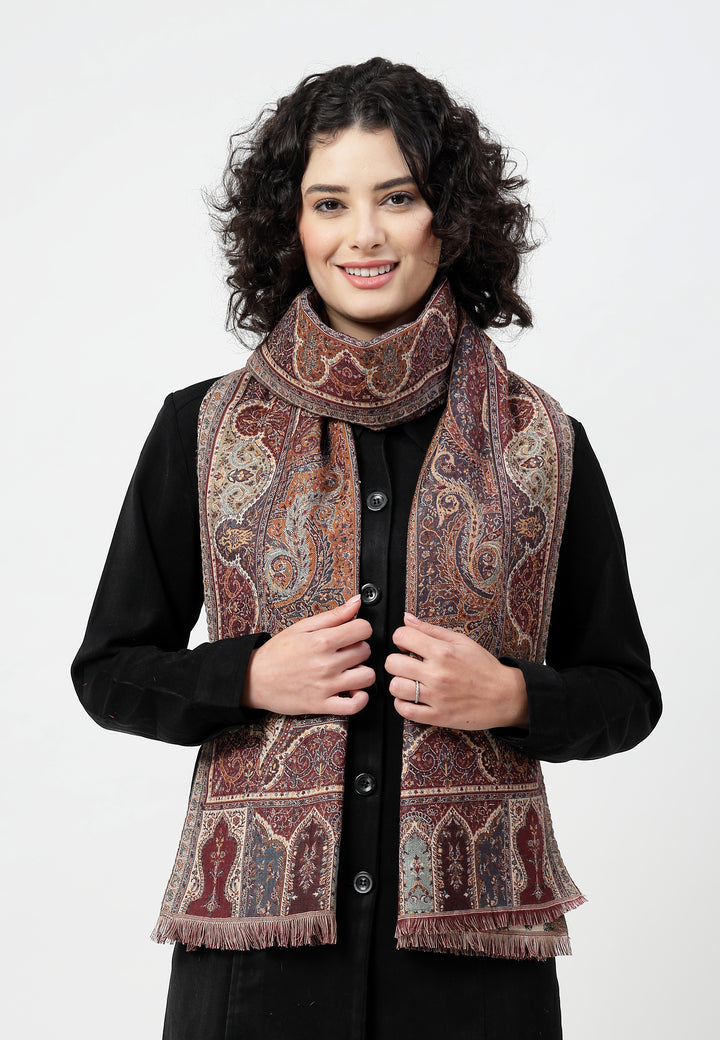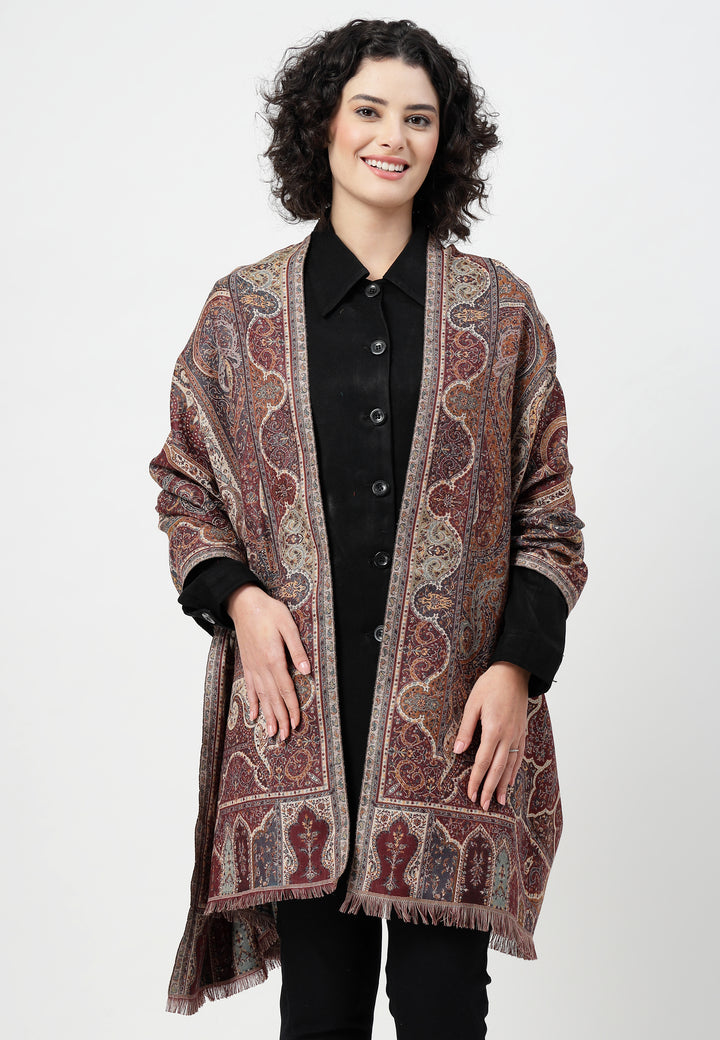 Mooie Jamawar ontwerpen, op een zachte faux pashmina stof en traditionele kunst. Populair sinds het Mughal-tijdperk. Deze traditionele Kashmiri stijl sjaal heeft een ingewikkeld ontwerp en kwaliteit.