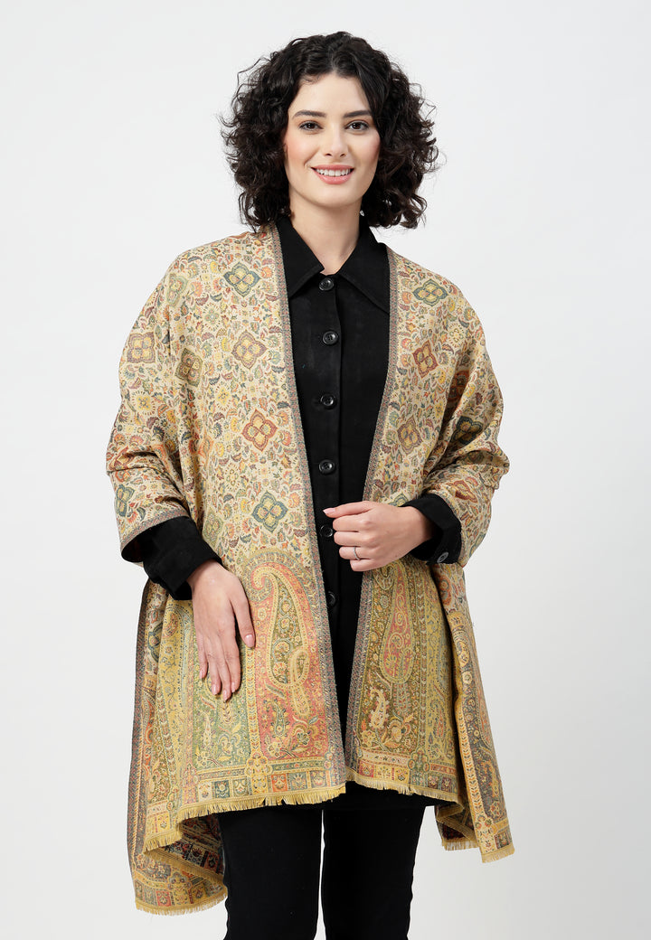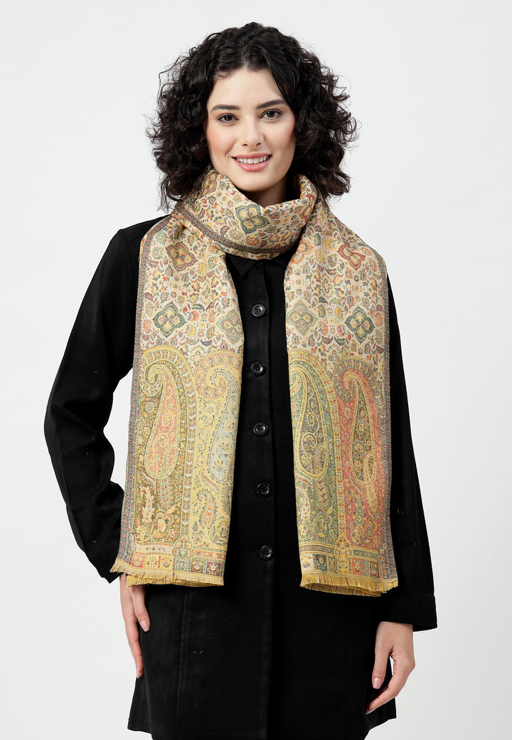 Mooie Jamawar ontwerpen, op een zachte faux pashmina stof en traditionele kunst. Populair sinds het Mughal-tijdperk. Deze traditionele Kashmiri stijl sjaal heeft een ingewikkeld ontwerp en kwaliteit.