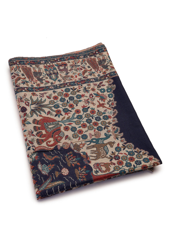 Mooie Jamawar ontwerpen, op een zachte faux pashmina stof en traditionele kunst. Populair sinds het Mughal-tijdperk. Deze traditionele Kashmiri stijl sjaal heeft een ingewikkeld ontwerp en kwaliteit.