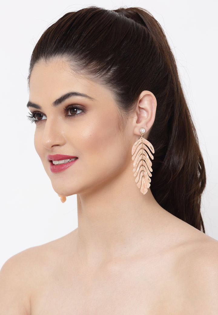 Sig hej til sommerstemninger med disse vitale, men eksotiske stykker. Eksotiske bladøreringe er et stilfuldt tilbehør, der henter inspiration fra naturens pragt. Disse øreringe. kan også indarbejdes i mere formel eller aftentøj. Overvej at bære dem med en slank, ensfarvet kjole eller en elegant jumpsuit. Øreringene kan give et statement-tilbehør, der tilføjer et unikt touch til dit ensemble.