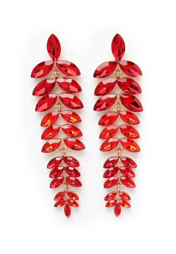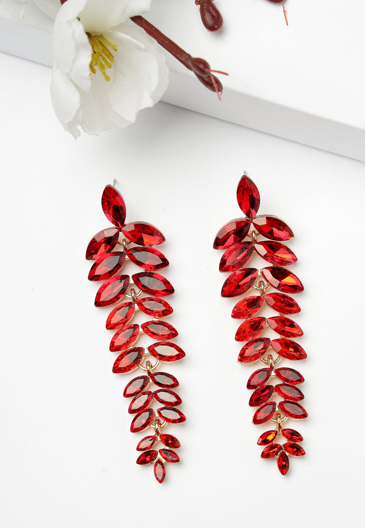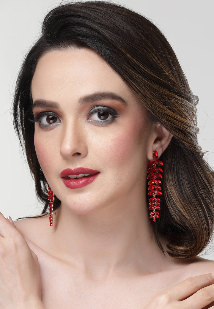 Disse smukke røde dråbe øreringe i form af faldende blade vil pryde dig med de livlige nuancer af naturens palet. Røde øreringe kan også komplementere neutrale farver som beige, taupe eller grå. Sæt dem sammen med et neutralt farvet outfit for en subtil farvestråle og ekstra interesse.