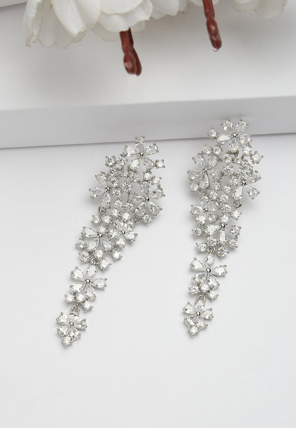 Boucles d'oreilles pendantes florales en zircone cubique