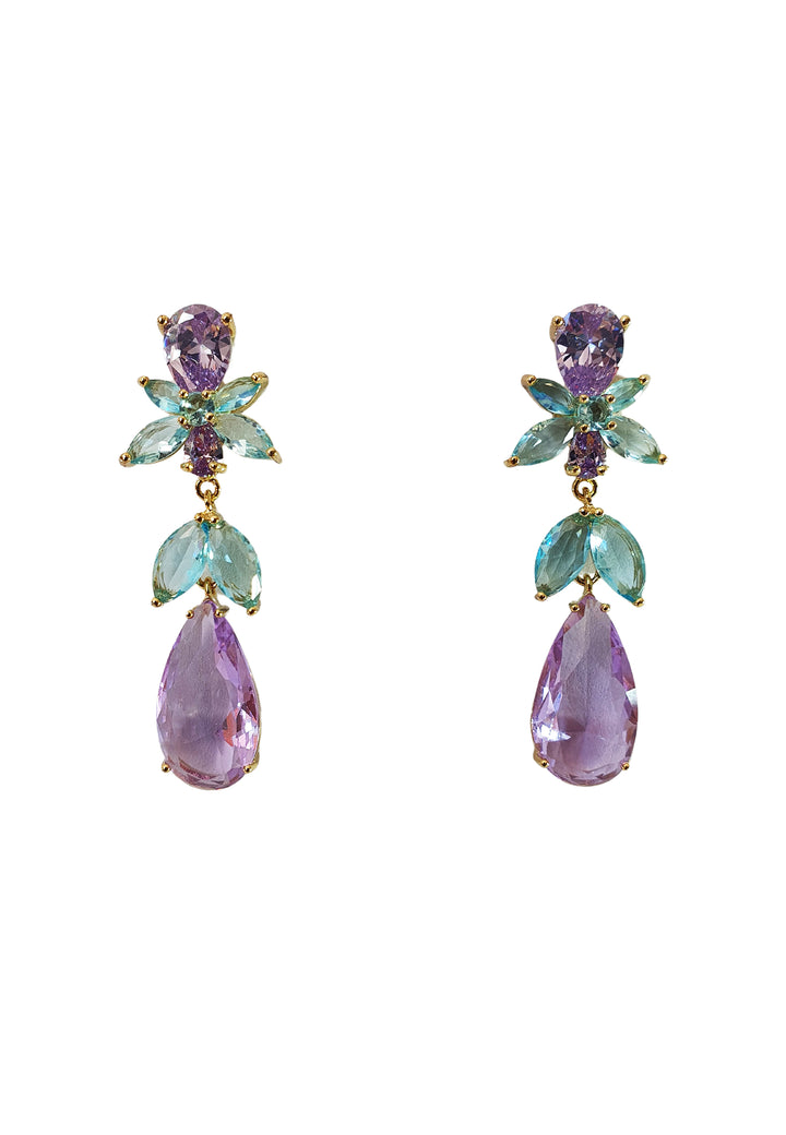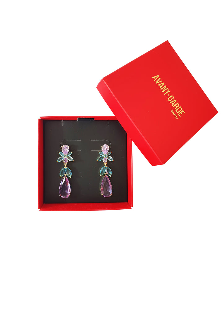 Les boucles d'oreilles pendantes florales en zircone cubique multicolores avec des nuances de bleu et de violet sont un accessoire vibrant et captivant qui ajoute une touche de couleur à n'importe quel ensemble. Ces boucles d'oreilles présentent des motifs floraux finement travaillés ornés d'éblouissantes pierres de zircone cubiques dans des tons de bleu et de violet. ces boucles d'oreilles sont un ajout polyvalent à toute collection de bijoux, ajoutant une touche d'élégance et de style à chaque ensemble.