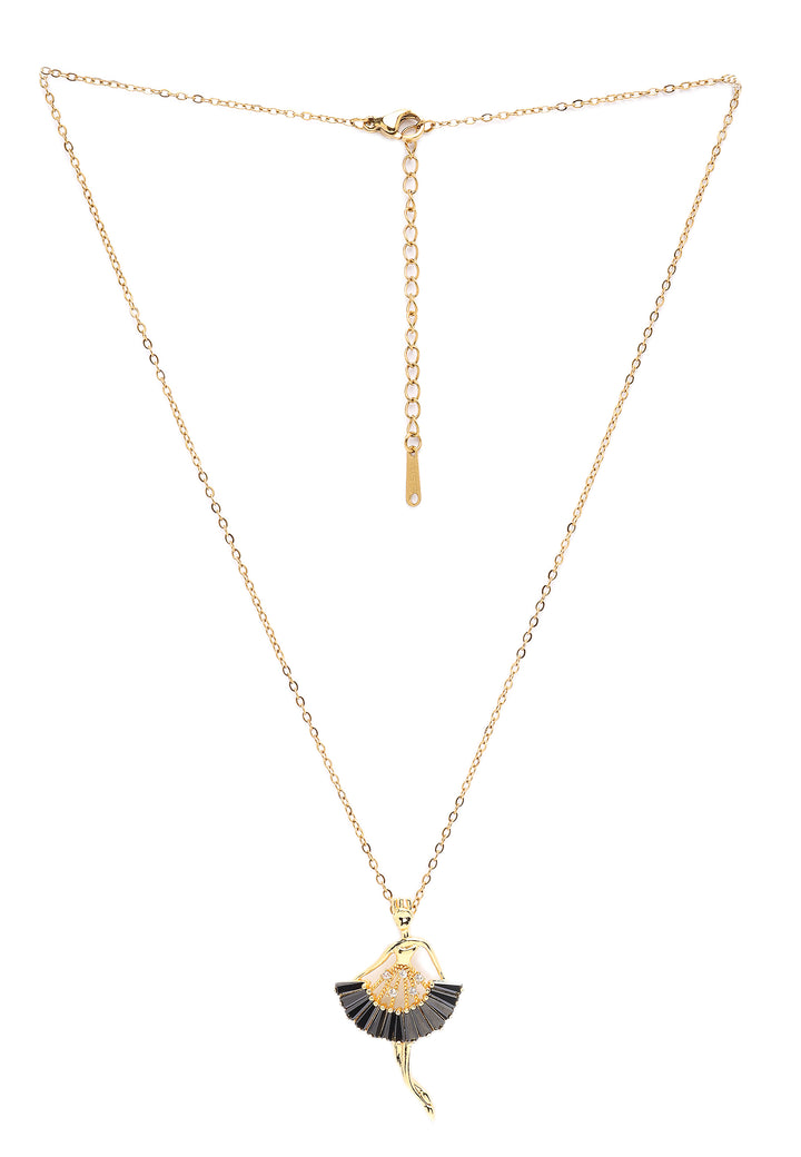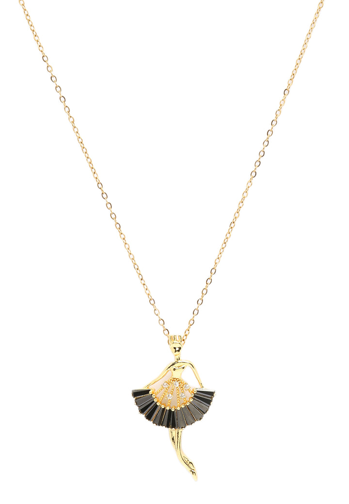 Aithris iontach ar aoibhinn na damhsa, taispeánann an pendant seo ballerina grámhar atá maisithe le tutu enamel dubh ag sreabhadh. Scaoileann an figiúr óir aoibhinn agus ealaín, crochta go mín ar shlabhra óir comhoiriúnach. Oiriúnach do dhámhsa, leannáin ealaíne, nó aon duine a luíonn le háilleacht na gluaiseachta, cuireann an píosa seo teagmháil uathúil agus ealaíonta le do chnuasach seodra.