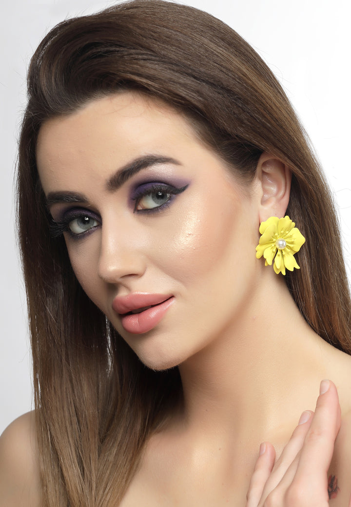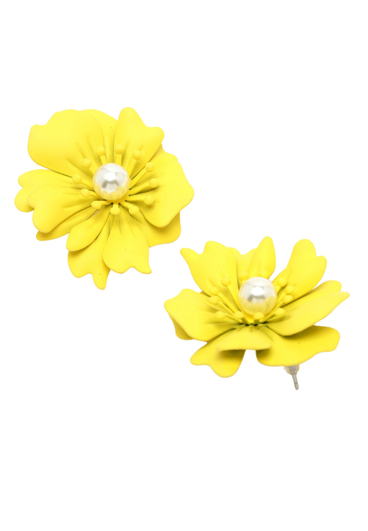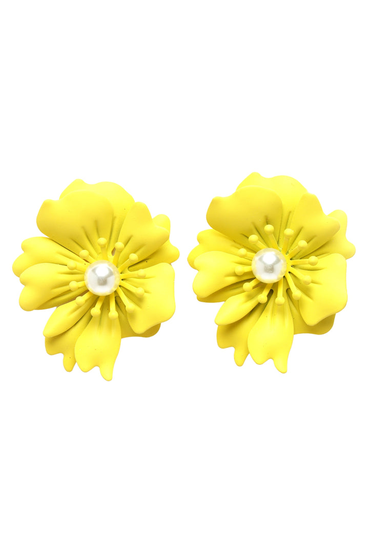 Oorbellen met bloemenparels in geel
