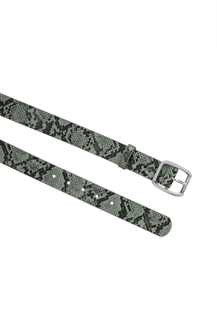 Deze exotische groene riem met slangenprint is een gedurfd accessoire dat een vleugje wilde elegantie toevoegt aan elke outfit. De levendige groene tint, gecombineerd met het ingewikkelde, getextureerde slangenprintpatroon, straalt een edgy en luxe sfeer uit. De strakke afwerking geeft het een moderne maar tijdloze uitstraling, waardoor het een veelzijdige toevoeging aan je garderobe is. Combineer het met een eenvoudig wit of zwart oversized T-shirt en versleten jeans voor een coole, ontspannen stijl.