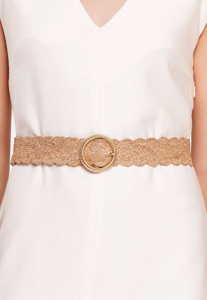 De Beige Chic Elastische Ronde Gesp Riem is een stijlvolle en veelzijdige accessoire die comfort combineert met hedendaagse elegantie. Het elastische materiaal zorgt voor een flexibele en comfortabele pasvorm, terwijl de ronde gesp een chique, minimalistische touch toevoegt. De beige kleur maakt het een neutraal, favoriet stuk dat gemakkelijk in verschillende outfits kan worden verwerkt, en zowel functionaliteit als stijl in één biedt. Combineer het met een spijkerjasje, midi-rok en een eenvoudig topje.