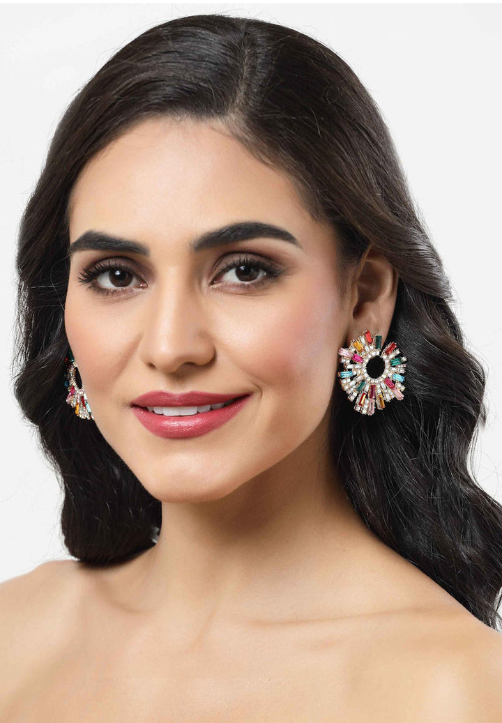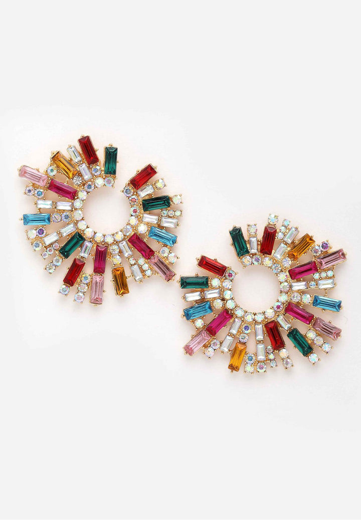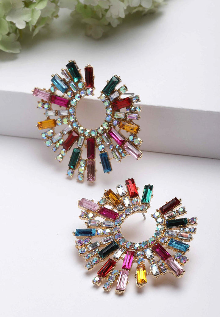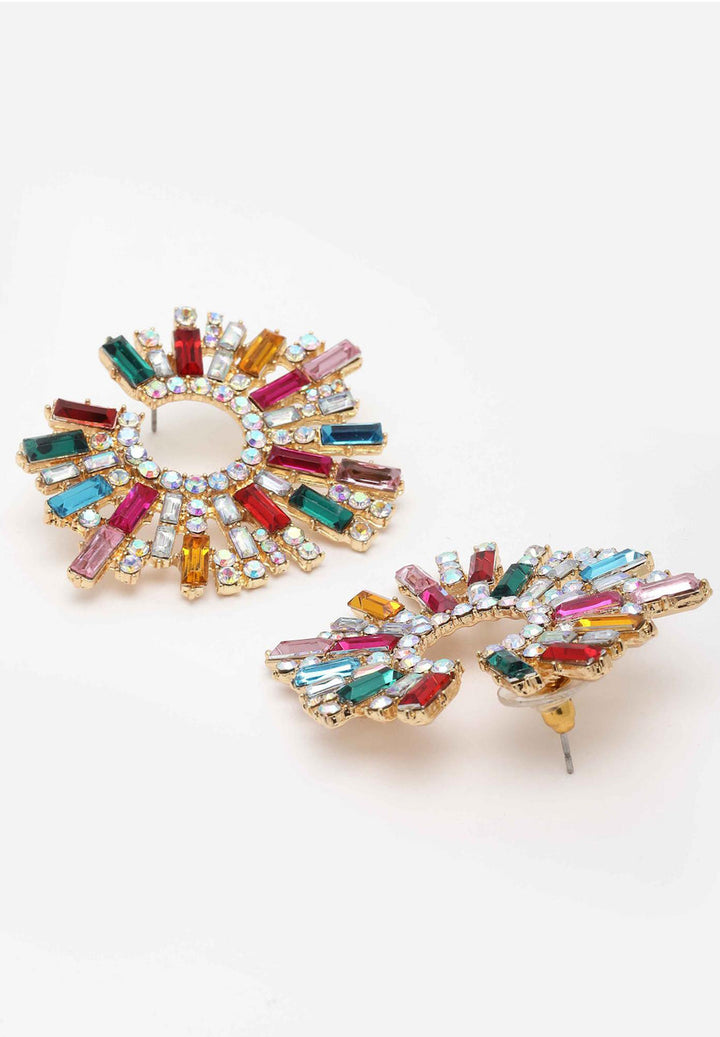 Een prachtig accessoire dat de schoonheid en energie van een zonnige dag belichaamt. Elk kristal heeft een andere levendige tint, waaronder tinten geel, oranje, roze en blauw, waardoor een speels en vrolijk palet ontstaat. Draag deze oorbellen om je outfit te voorzien van een uitbarsting van levendige energie