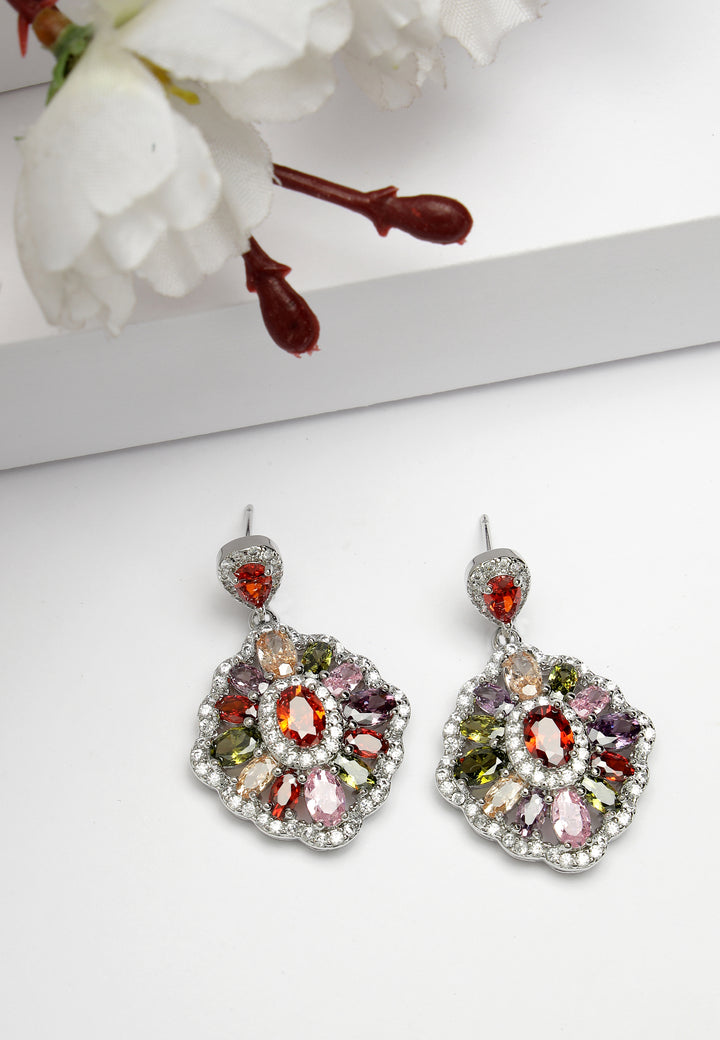De Cubic Zirconia Statement Oorbellen in veelkleurig met rode, gele, paarse, roze en groene stenen creëren een levendig en opvallend accessoire dat een gewaagd fashion statement maakt. Deze oorbellen zijn voorzien van een oogverblindende reeks zirkoniastenen in verschillende kleuren, gerangschikt in een boeiend ontwerp. Combineer ze met een eenvoudige zwarte jurk voor een avondje uit of draag ze met een casual ensemble om een vleugje kleur toe te voegen: de veelkleurige Cubic Zirconia Statement Oorbellen maken zeker een statement.