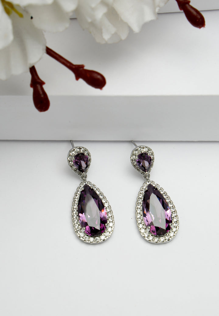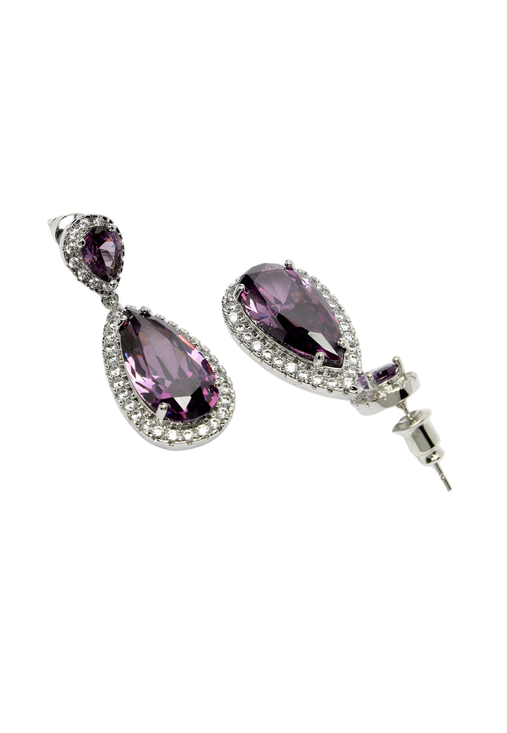 Omarm de betoverende charme van deze paarse zirkonia-druppeloorbellen, versierd met zirkonia-stenen die vakkundig zijn gesneden en gepolijst voor een oogverblindende schittering. Hun aanpassingsvermogen zorgt voor een naadloze overgang van chique overdag naar glamour in de avond, waardoor ze een essentieel stuk zijn voor elke sieradencollectie. Verbeter uw mode-ensemble met deze prachtige oorbellen met blauwe zirkonia's, een accessoire dat bij elke gelegenheid verfijning en elegantie uitstraalt.
