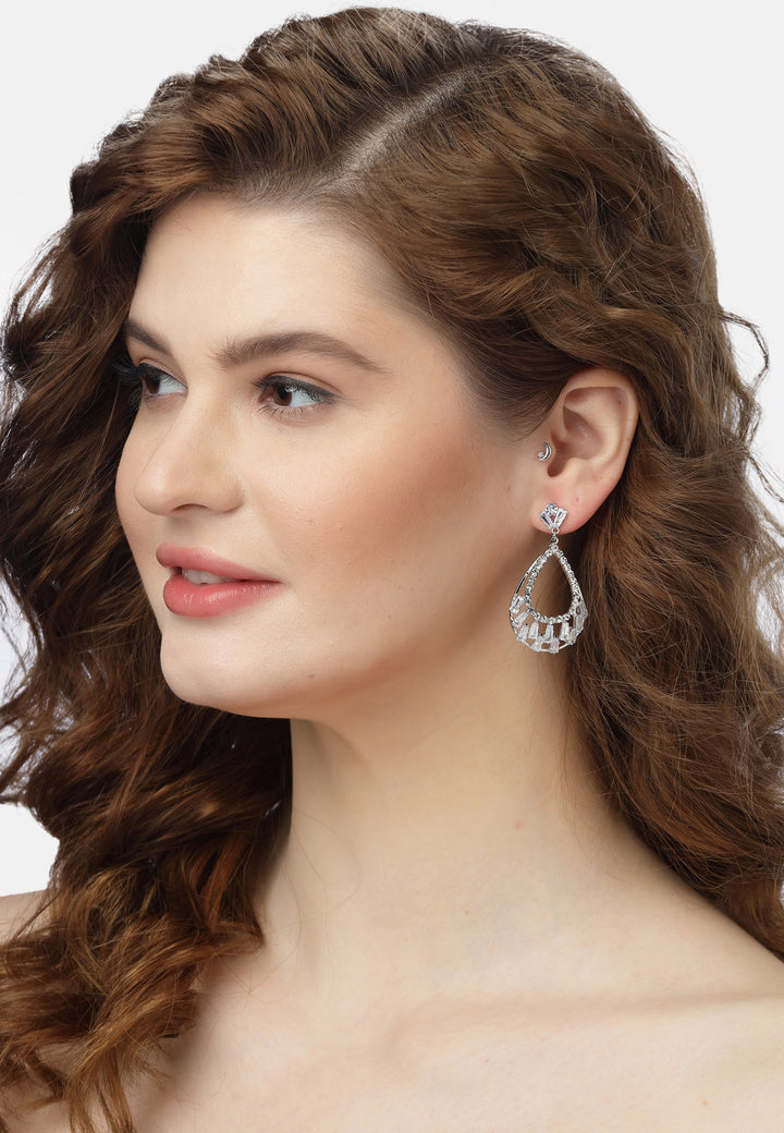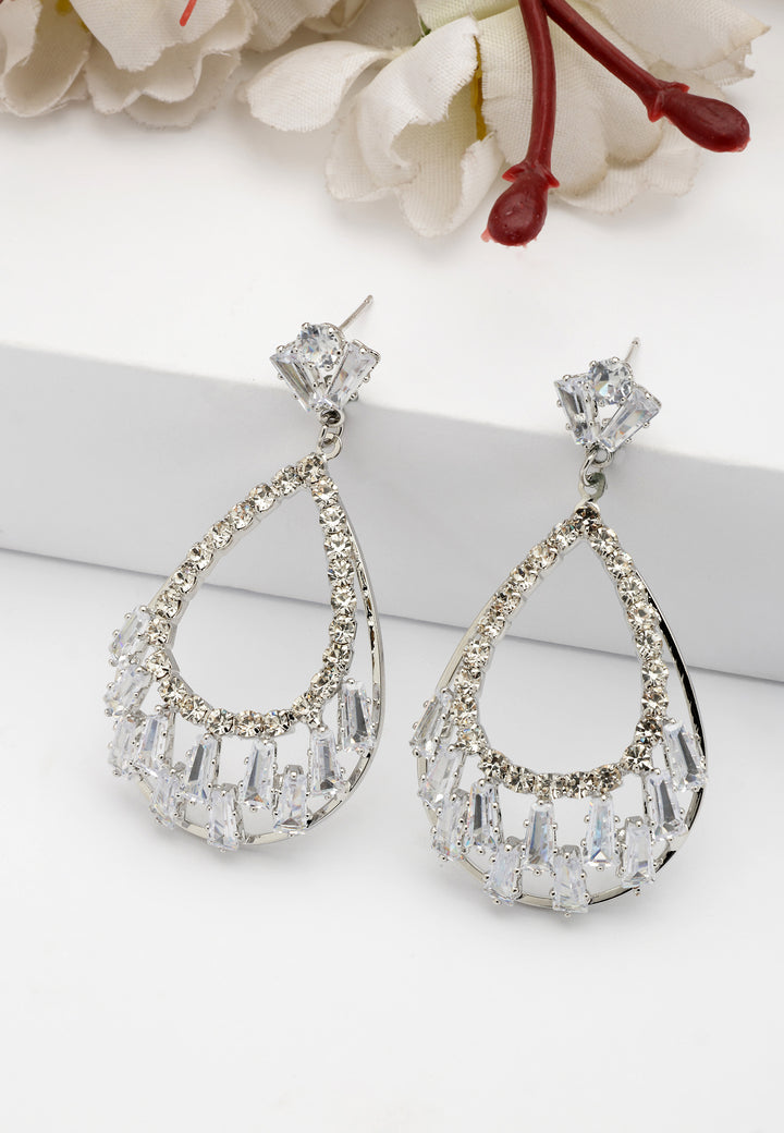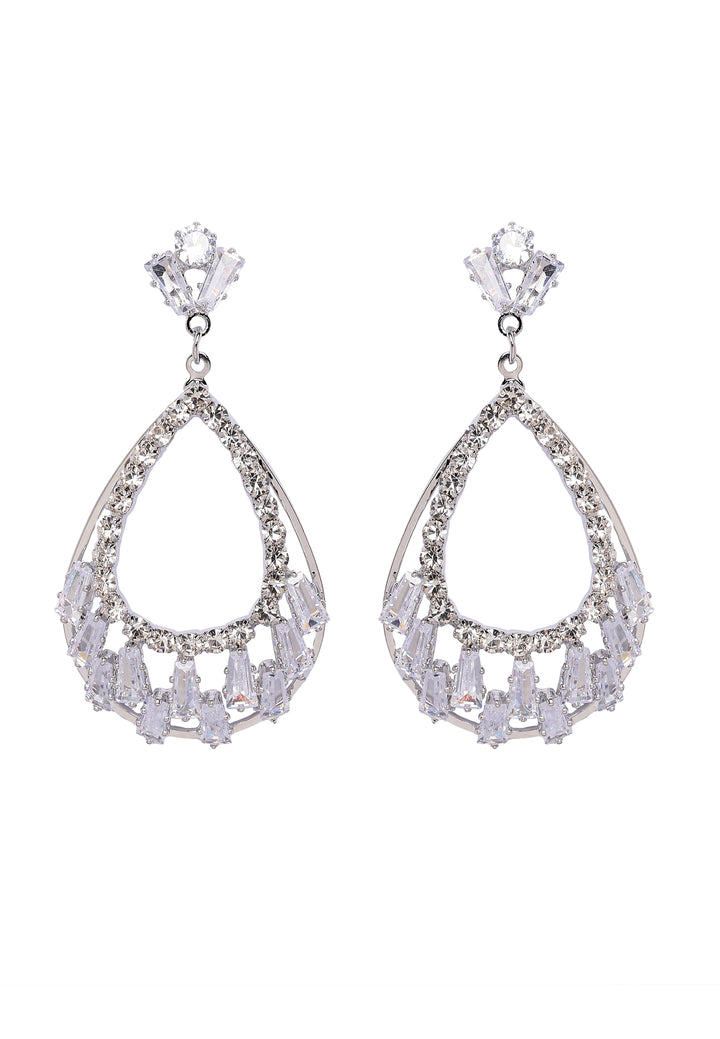 Deze schitterende oorbellen hebben een verbluffend druppelontwerp, bezaaid met een waterval van sprankelende stenen. Ze zijn een statementstuk dat elegantie en charme uitstraalt.