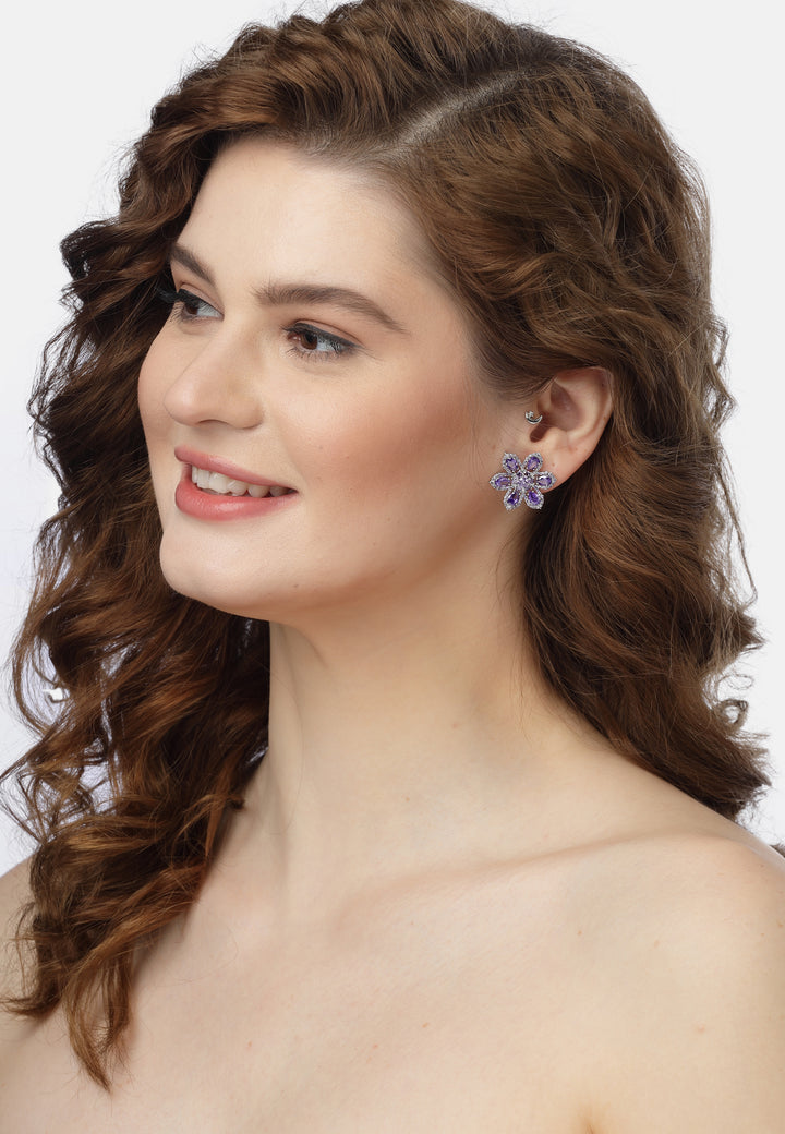 Een vleugje paarse betovering! Het ingewikkelde bloemenpatroon, versierd met een schitterende display van glinsterende stenen, brengt een betoverende en gracieuze aantrekkingskracht die zeker de aandacht zal trekken. Deze oorbellen zijn als miniatuursterren voor je oren, die elke outfit een vleugje hemelse charme geven.