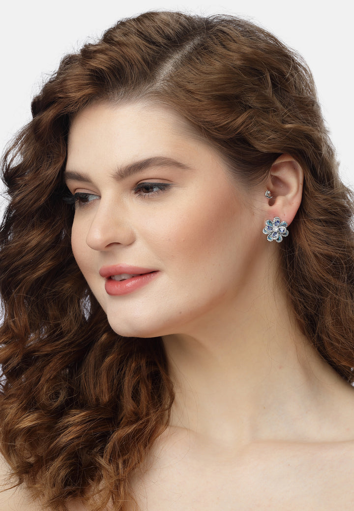 Ze zijn een miniatuur botanische tuin voor je oren! Delicate bloemmotieven, versierd met een schitterende reeks sprankelende blauwe stenen, creëren een betoverende en fascinerende uitstraling. Dit zijn niet zomaar accessoires, het zijn draagbare kunst.