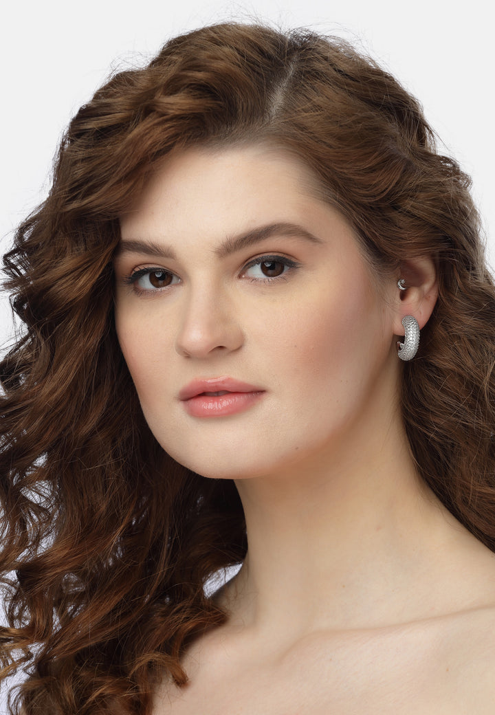 Deze schattige mini-hoepel oorbellen zijn als kleine sprankelende armbanden voor je oren! Versierd met een glinsterende reeks kleine stenen, vangen ze het licht prachtig en zullen ze zeker een glimlach op je gezicht toveren. Perfect van formaat om een vleugje sprankeling en persoonlijkheid aan elke outfit toe te voegen, zijn ze ideaal voor zowel een avondje uit als om een vleugje glamour aan je dagelijkse stijl toe te voegen. Lichtgewicht en ongelooflijk comfortabel, je zou zelfs kunnen vergeten dat je ze draagt.